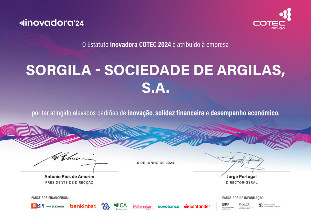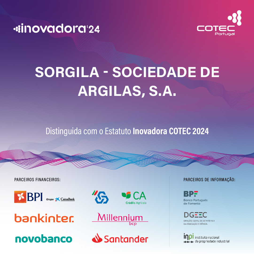 A SORGILA – SOCIEDADE DE ARGILAS, S.A. obteve o estatuto INOVADORA COTEC 24.